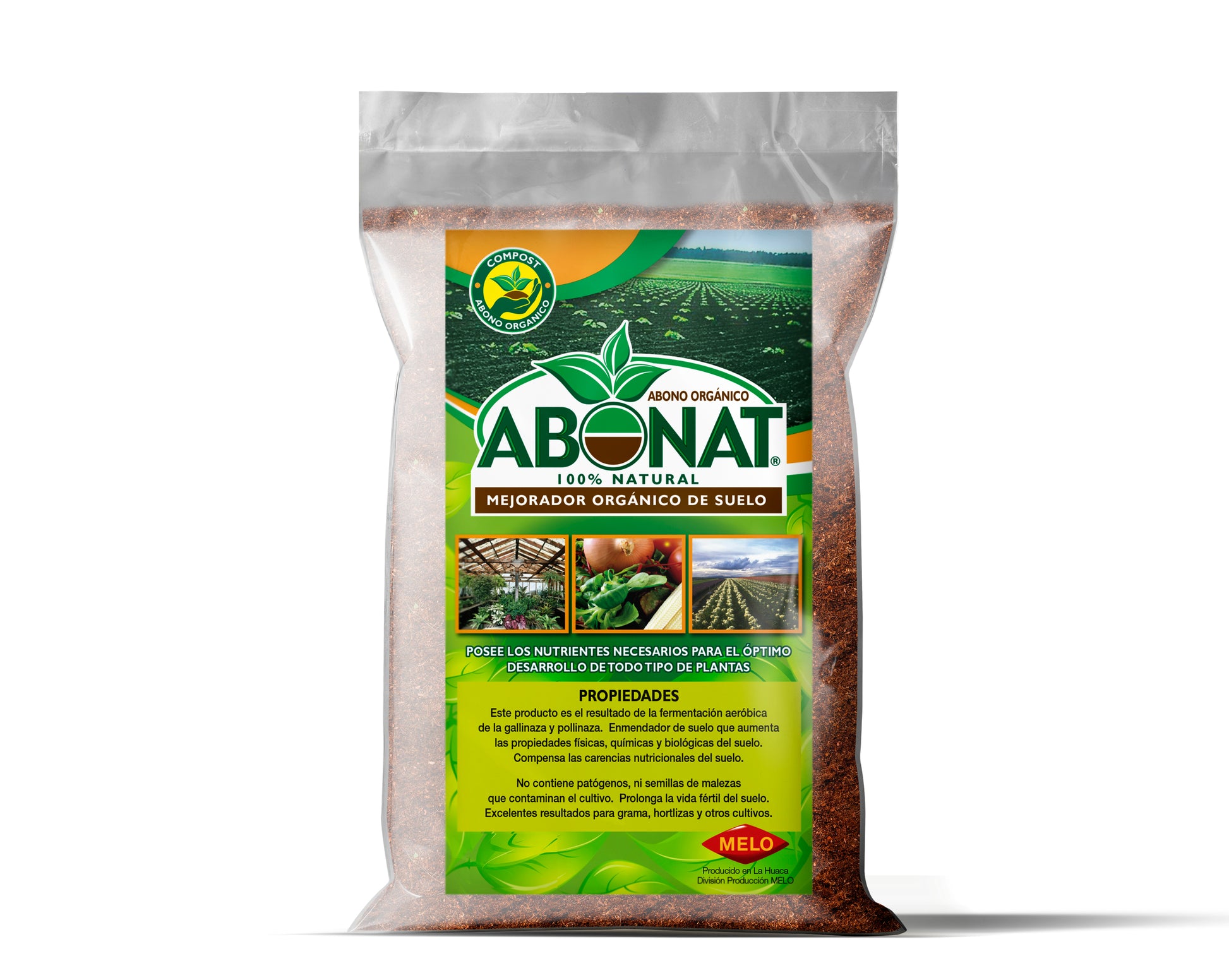 Abonat es un mejorador orgánico de suelo 100% natural. Este abono es libre de patógenos y semillas de maleza, asegurando un producto seguro y eficaz para tus cultivos.